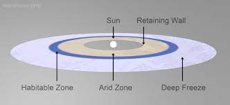 At its thinnest point, an Alderson disc’s base material is thousands of kilometers thick. The inner & outer wall is several thousand kilometers high, and holds in the atmosphere. Both sides of the disc can hold habitat zones. Radiation, heat & other factors limit the living space to a narrow band 1AU – 3AU depending on star class. The uninhabitable zones could be used for industry, life support zones, alien life, or disc-evolved life.
